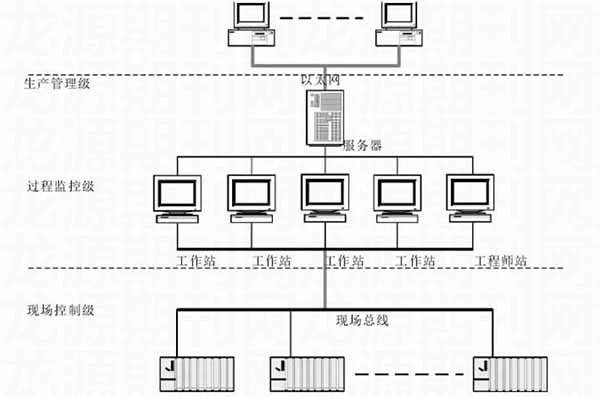 針對鎢礦選廠生產的實際需求,這里應用相應的自動化技術,對自動化監控系統進行了設計。在系統設計中,遵循“方案合理、技術先進、運行可靠、操作方便”的原則,系統整體采用集散控制系統,基于現場總線通訊,其整體網絡構架如下: