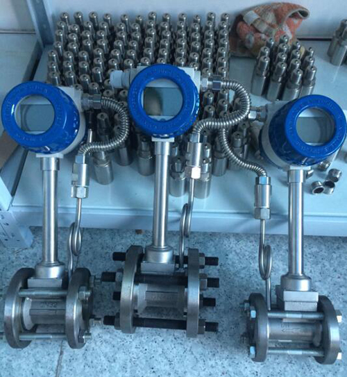 ▲分體式渦街流量計采用不銹鋼材質,可適用于腐蝕性介質的測量。