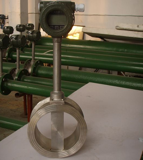 渦街流量計是根據卡門渦街原理研究生產的,主要用于工業管道介質流體的流量測量,如氣體、液體、蒸氣等多種介質。其特點是壓力損失小,量程范圍大,精度高,在測量工況體積流量時幾乎不受流體密度、壓力、溫度、粘度等參數的影響。無可動機械零件,因此可靠性高,維護量小。儀表參數能長期穩定。渦街流量計采用壓電應力式傳感器,可靠性高,可在-20℃~+250℃的工作溫度范圍內工作。有模擬標準信號,也有數字脈沖信號輸出,容易與計算機等數字系統配套使用,是一種比較先進、理想的測量儀器。