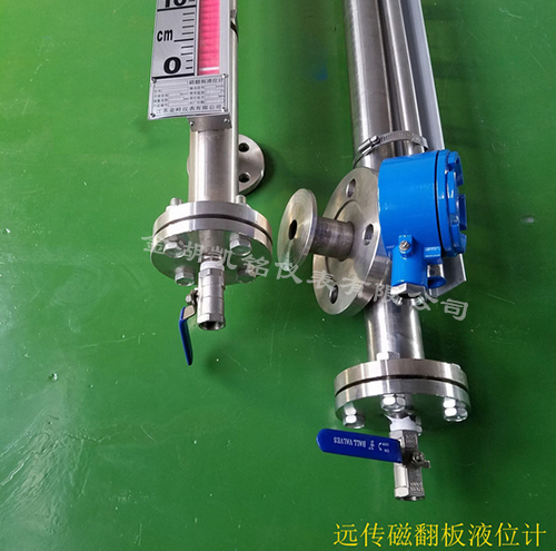 在管體的另一側(cè)可按用戶需要加裝電遠傳變送器,將液位高度轉(zhuǎn)換成標準電流信號輸出,以供液位信號輸出,以供液位信號遠傳至二次儀表進行指示控制與檢測。