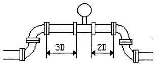 高爐煤氣流量計由于其獨特的性能,一直受到人們重視,并己到了廣泛的應用,但仍有兩個方面的問題困擾著人們,一是由于儀表上游管道阻流件的干擾,流場發生畸變,影響旋渦正常撥離。為了克服流場擾動,儀表前需要配裝較長直管道(一般為15~40倍的工藝管內徑的長度),而在實際現場是很難滿足的。二是,高爐煤氣流量計主要特點之一是量程寬,一般在10:1左右,應該說這樣寬的測量范圍應屬比較優良的性能,但在實際工業應用中,*大流量遠低于儀表的上限值,*小流量又往往會低于儀表的下限值,一些儀表經常工作在下限流量附近,造成儀表的計量準確度下降,這時信號較弱,儀表的抗干擾能力也下降。為了測量小流量,人們往往采用內腔形狀為園臺的傳統變徑管,經過縮徑提高測量處的流速。使高爐煤氣流量計工作在正常流速范圍內,但這種變徑方式,結構尺寸大(一般長度為工藝管內徑的3~5倍),同時,由于流體流經變徑管,在變徑處產生大量旋轉流團,增大局部阻力損失,也使流場發生畸變。所以必須在變徑管與儀表之間加裝大于15倍工藝管內徑長度的直管道進行整流,且增加了沿程阻力損失(如圖1所示),這種方法增加施工成本,也給加工、安裝帶來不便。