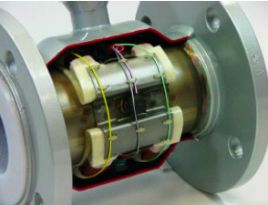 由此可見,電鍍廢水流量計正常運(yùn)行需要有穩(wěn)定的磁場,而磁場正是靠傳感器線圈內(nèi)的 勵磁電流來產(chǎn)生的。勵磁線圈如圖2所示。