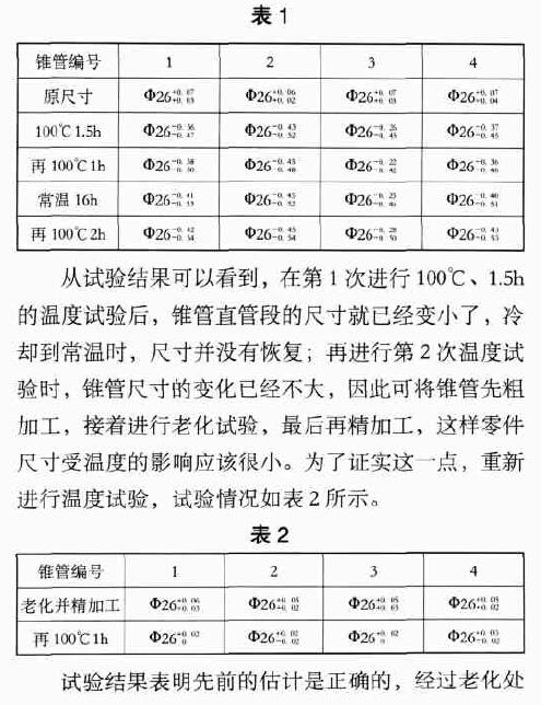 由于錐管老化試驗的溫度為100℃,而產(chǎn)品的使用溫度只有70℃,因此按改進(jìn)的工藝加工錐管,必定能滿足產(chǎn)品的設(shè)計要求。