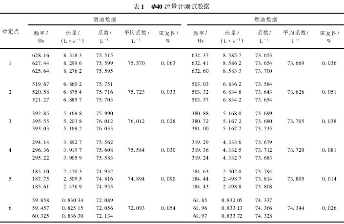 Φ40流量計測試數據如表1所示。