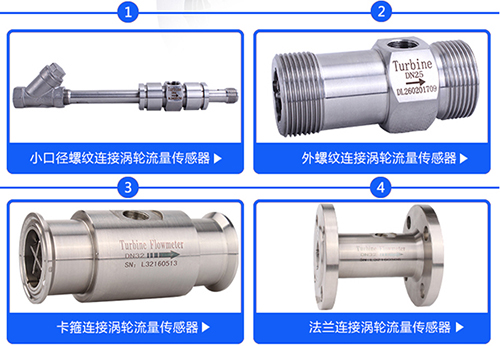 渦輪流量計的安裝有法蘭連接、螺紋連接及夾裝式三種方式。安裝時液體流動方向應與傳感器外殼上指示流向的箭頭方向一致,且上游直管段應大于等于20倍管徑,下游直管段大于等于5倍管徑。