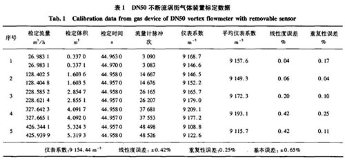 由表1和表2的實(shí)際標(biāo)定數(shù)據(jù)可知,在量程比大于1:10的情況下,用不斷流氫氣流量計(jì)測(cè)量氣體或液體介質(zhì)時(shí),基本誤差及重復(fù)性均能達(dá)到中華人民共和國機(jī)械行業(yè)標(biāo)準(zhǔn)JB/T9249一1999《渦街流量傳感器》[’1中所規(guī)定的精度要求。