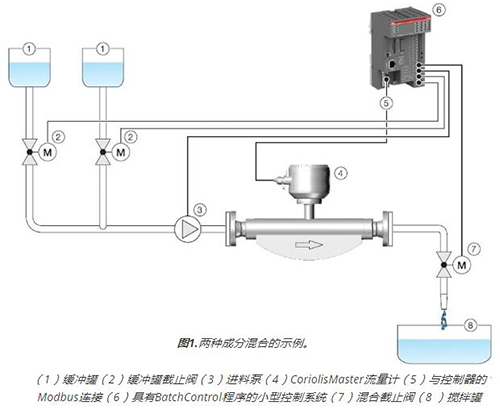 操作員使用觸摸屏顯示器輸入總混合量和各個步驟的數量。然后,通過觸點或在顯示屏上開始混合操作。然后由控制系統的BatchControl軟件自動啟動泵和閥門。整個混合操作完成后,安裝會自動停止。