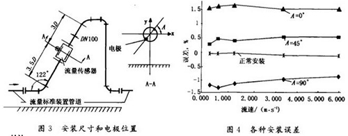 2)實驗證明電極軸線45。安裝比傳統水平安裝(A-o。)受彎管流動擾動影響有很大改善。