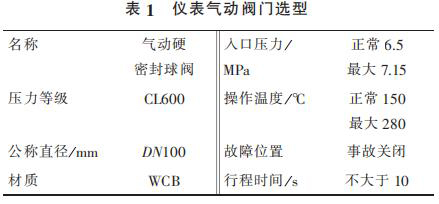 1) 蒸汽計量流量計出口管線總閥泄漏無法在線處理,導致氣化爐停車。在入氣化爐根部增加 2 臺儀表氣動閥門,要求每月進行 2 次開、關,防止閥門出現(xiàn)卡塞現(xiàn)象。 新增 2 臺儀表氣動閥門相關參數(shù)見表 1。
