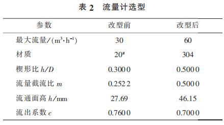 2) 為了解決泵出口流量計頻繁泄漏以及流量較低不能滿足工藝需求的問題,更換新型流量計,其相關參數(shù)見表 2。 更換后的流量計運行 4 000 h后未出現(xiàn)泄漏現(xiàn)象。