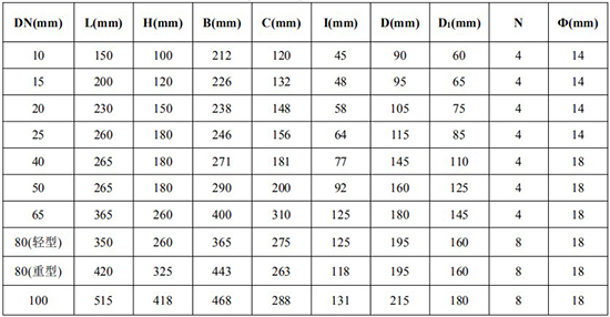 *DN10/DN50(輕型)/DN65/DN80(輕型)法蘭尺寸為 1.6MPa 標準;其余口徑為 6.4MPa 標準;