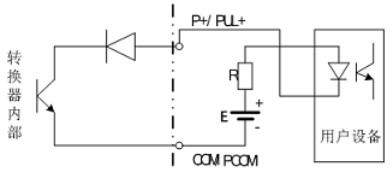 PUL+/ P+、ALM+(AH)、ALM-(AL)和 PDIR(FDIR)均為集電極開(kāi)路(OC 門(mén))輸出(參閱圖 3.6b、3.6d,用戶(hù)接線時(shí)必須參照如下電路外接電源和負(fù)載: