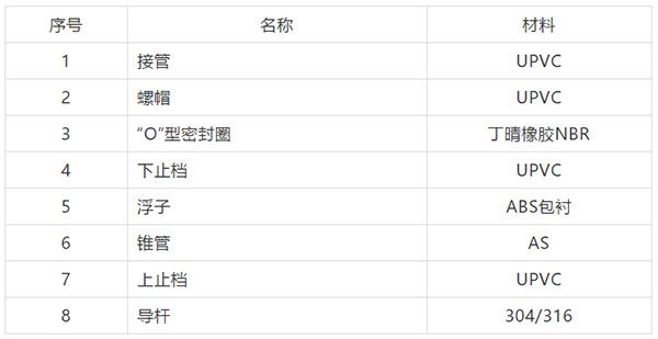 4).材質:錐管:AS;導桿:不銹鋼304;接頭:ABS