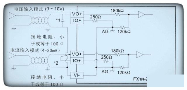 上圖是三菱PLC的一塊模擬量輸入模塊,只有兩種模擬量信號輸入,一路是電壓信號輸入、一路是電流信號輸入模,而且此模塊不能同時用于兩種信號工作。由題目可知現場超聲波液位計輸出的是電流信號,因此將模擬量輸入模塊選擇電流信號輸入模式。由于使用的是電流信號輸入模式,要將圖中所示的VO+和IO+進行短接。而VI-是接電壓信號或電流信號的公共端子。