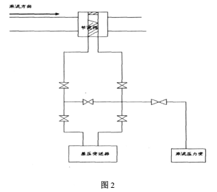 圖2是表示流量件與差壓變送器的連接圖,節(jié)流孔板的安裝必須使節(jié)流件刀口的方向與介質(zhì)的流向相垂直,而且刀口有刃的一面背對來流方向,來流壓力變?nèi)河谡龎簜?cè),才能保證測量的準確性。